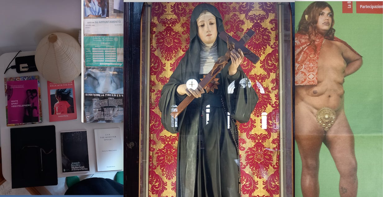 This week was crazy. I hadn’t quite clocked the cumulative demands of working full time, meeting all the other British Council fellows, working at the British Pavilion about 21 hrs a week, and living with Holly and her 11 week old newborn, Arlo. Acclimatisation was long, and sleep was short. Venice seduced and repulsed at once. A city at once adored and stolen. On day three at work at the Pavilion, over 4000 bodies passed mine in close proximity. An art theme park the Giardini was. It was nice to have friends in the city at the same time. We went for a Samhain dinner, before poor Holly got the lurgy and vomited prolifically out of our balcony, and into the demure, quiet square beneath. By day 8, I had so far dodged the vomiting bug, and was starting to find some routine within which to weave together this paradoxical city, labyrinthine streets, the bonkers existential state that very small babies appear to have on me, time with Holly and a silly work load.