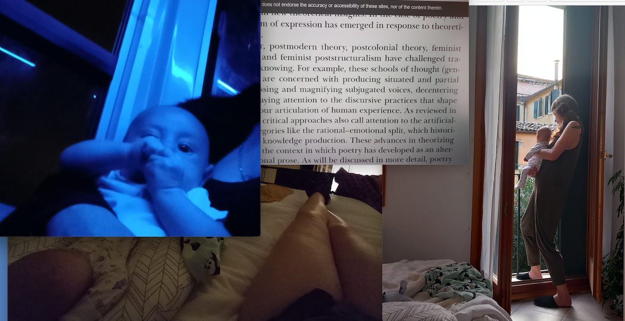 Reading, writing, baby and mumma shared time in our little flat